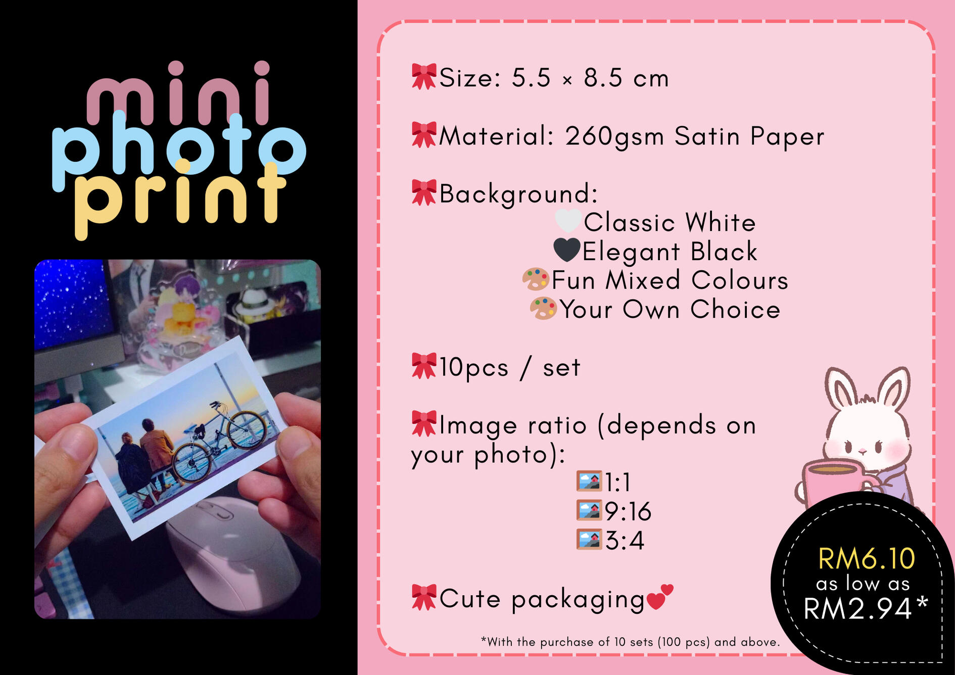 Direct Order:1. Message Kina on Telegram for the next steps.2. Choose your template/finishing (if available).3. Make the payment and send your proof of payment.4. Submit your photos/design after payment (please prepare them beforehand). Make sure all images are correct.5. Kina will prepare your order based on the current queue.Important!This is a pre-order. Production time is 2β14 business days depending on the queue.